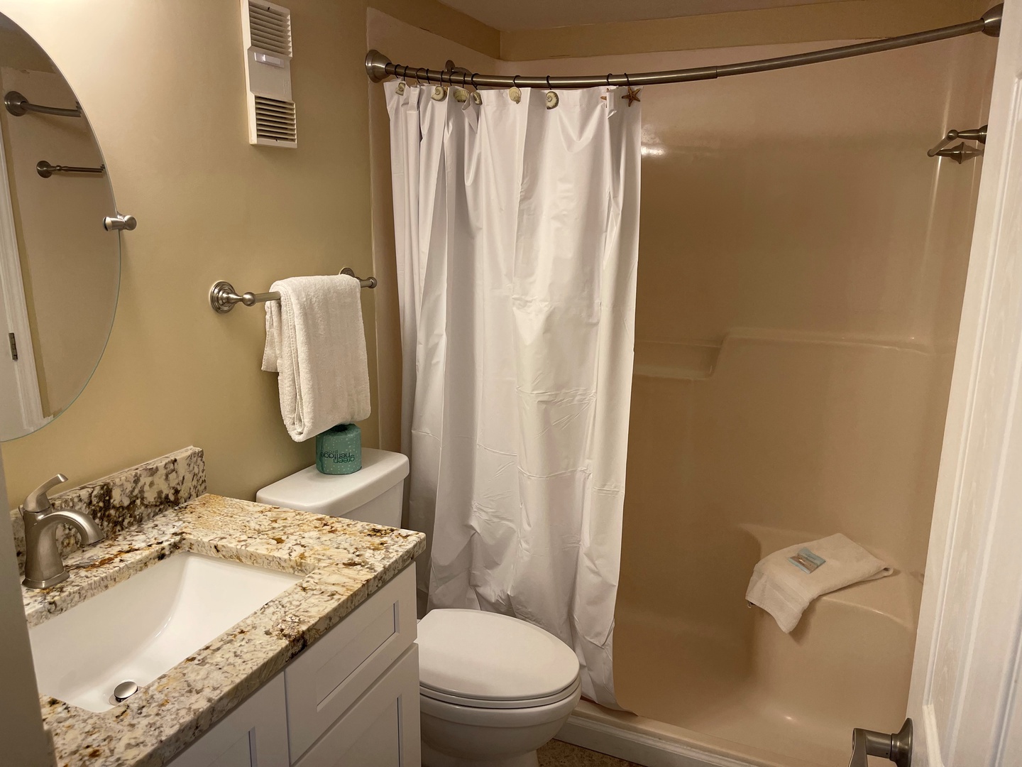 BATHROOMS: Walk-in shower in guest bathroom and tub/shower combo in master bathroom