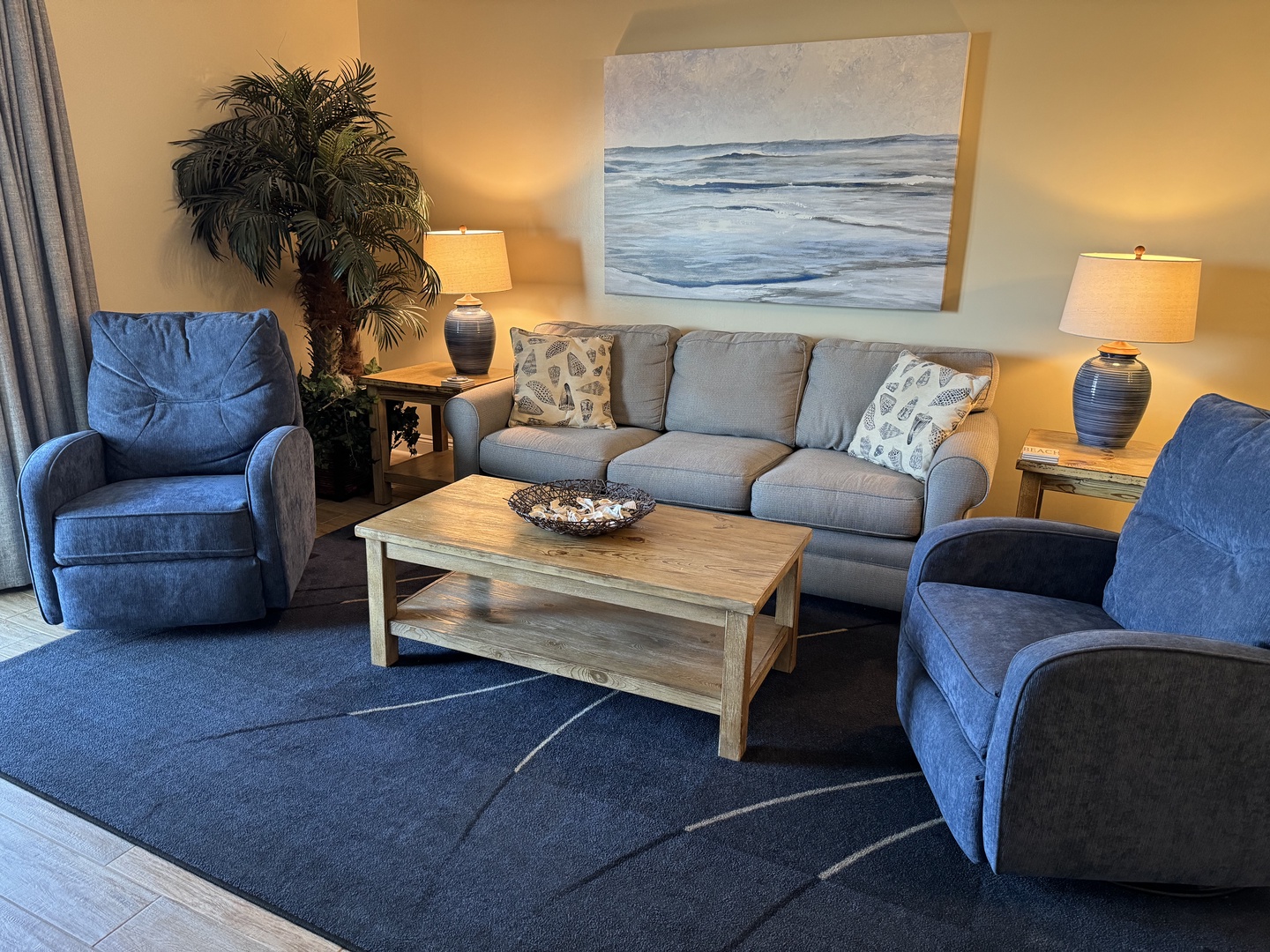 •LIVING ROOM: Queen size sleeper sofa with 2 rocker recliners