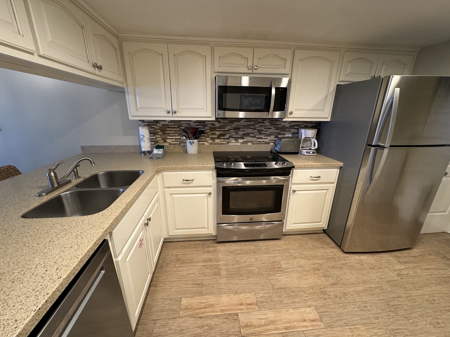 •KITCHEN: Full kitchen with updated stainless steel appliances, coffee maker and Keurig available, toaster, washer/dryer and dishwasher. Has updated cabinets and countertops