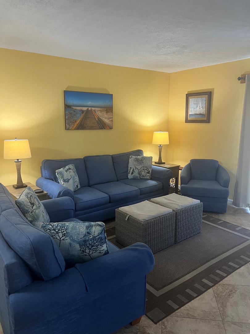 LIVING ROOM: Large couch, love seat and chair
