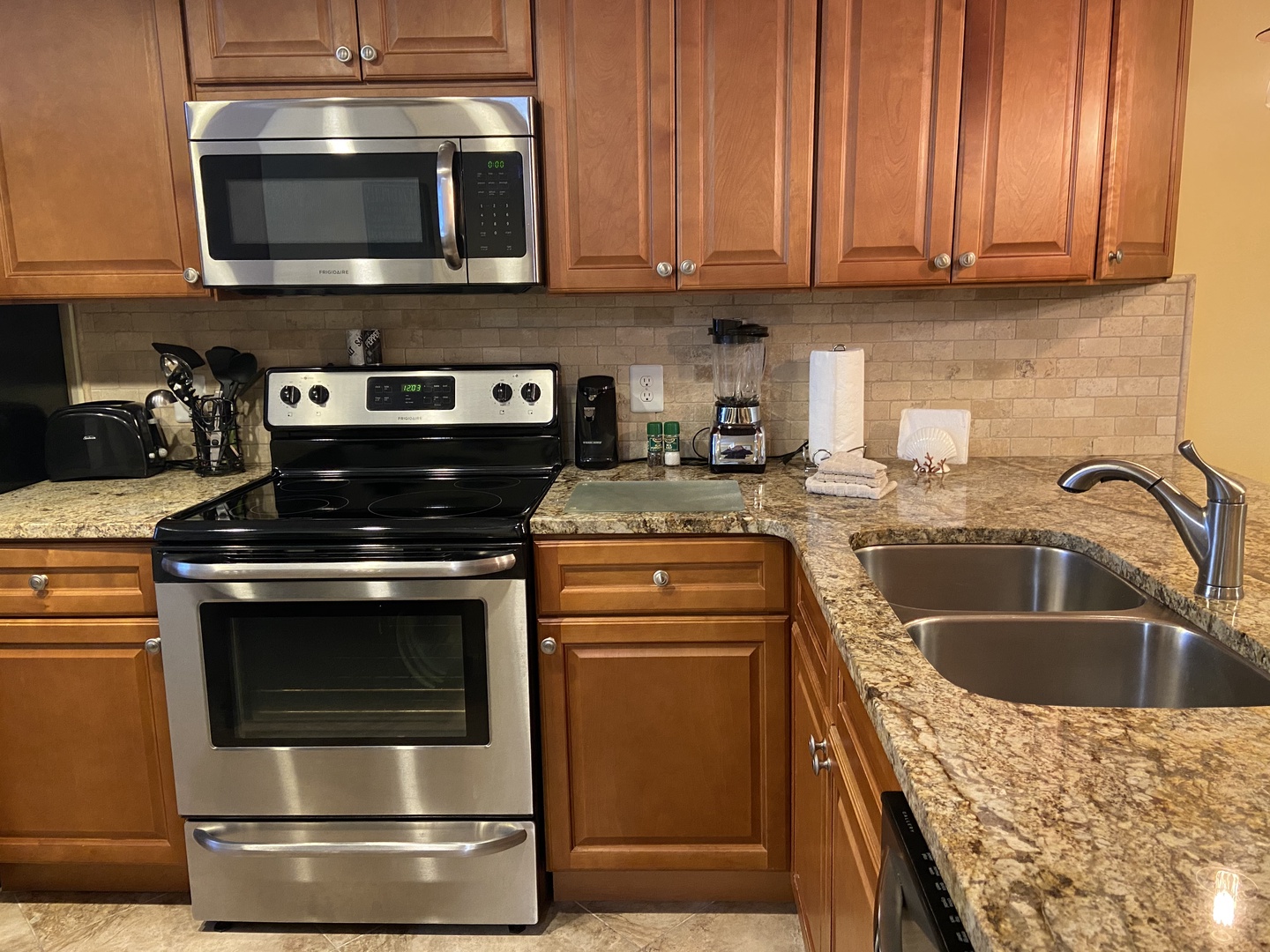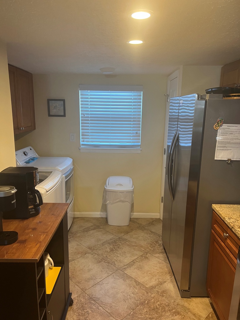 KITCHEN: Full kitchen with updated stainless steel appliances. Kitchen also has new granite countertops and cabinets. Includes coffee maker, Keurig, toaster, washer/dryer and dishwasher