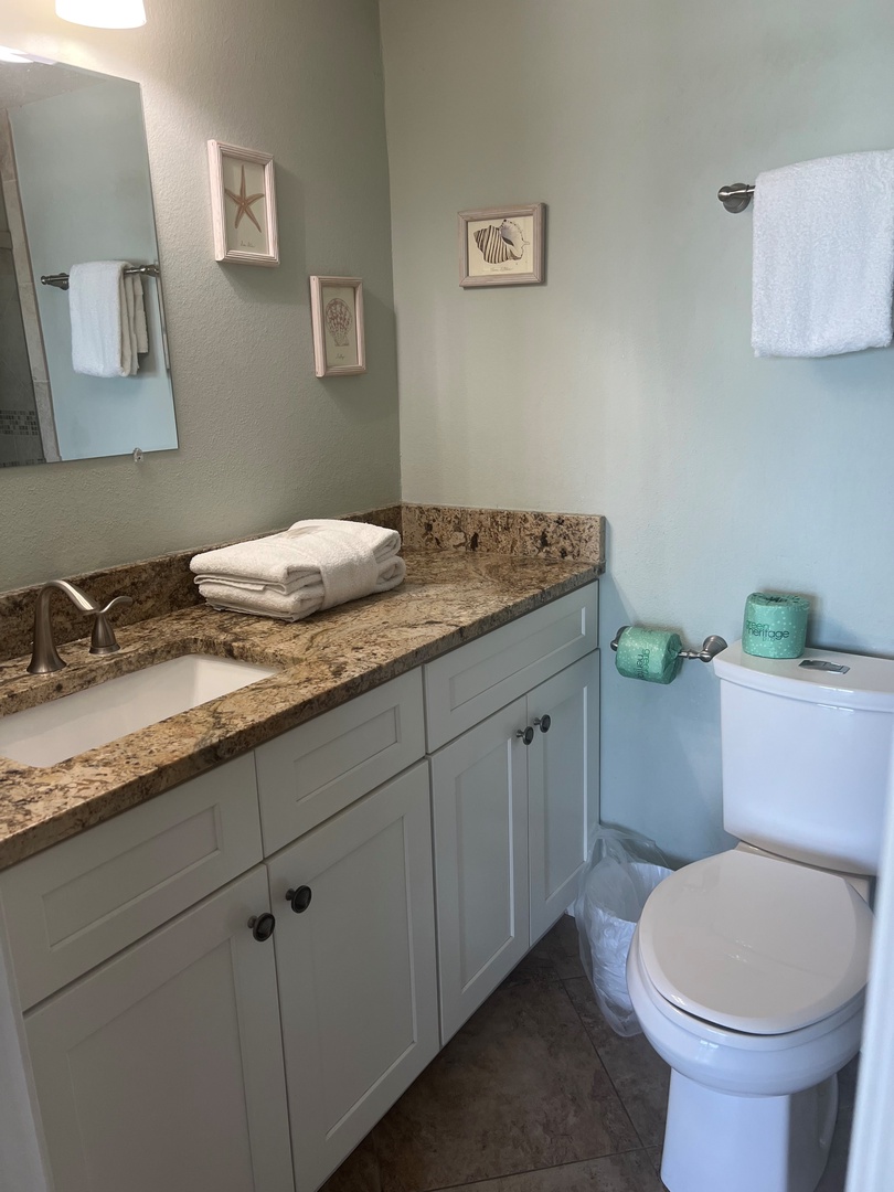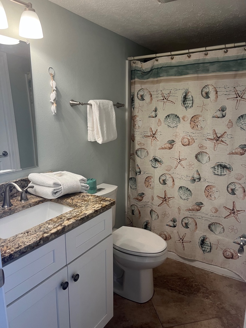 BATHROOMS: Walk-in shower in master bathroom, tub/shower in guest bathroom. Blow dryers are provided