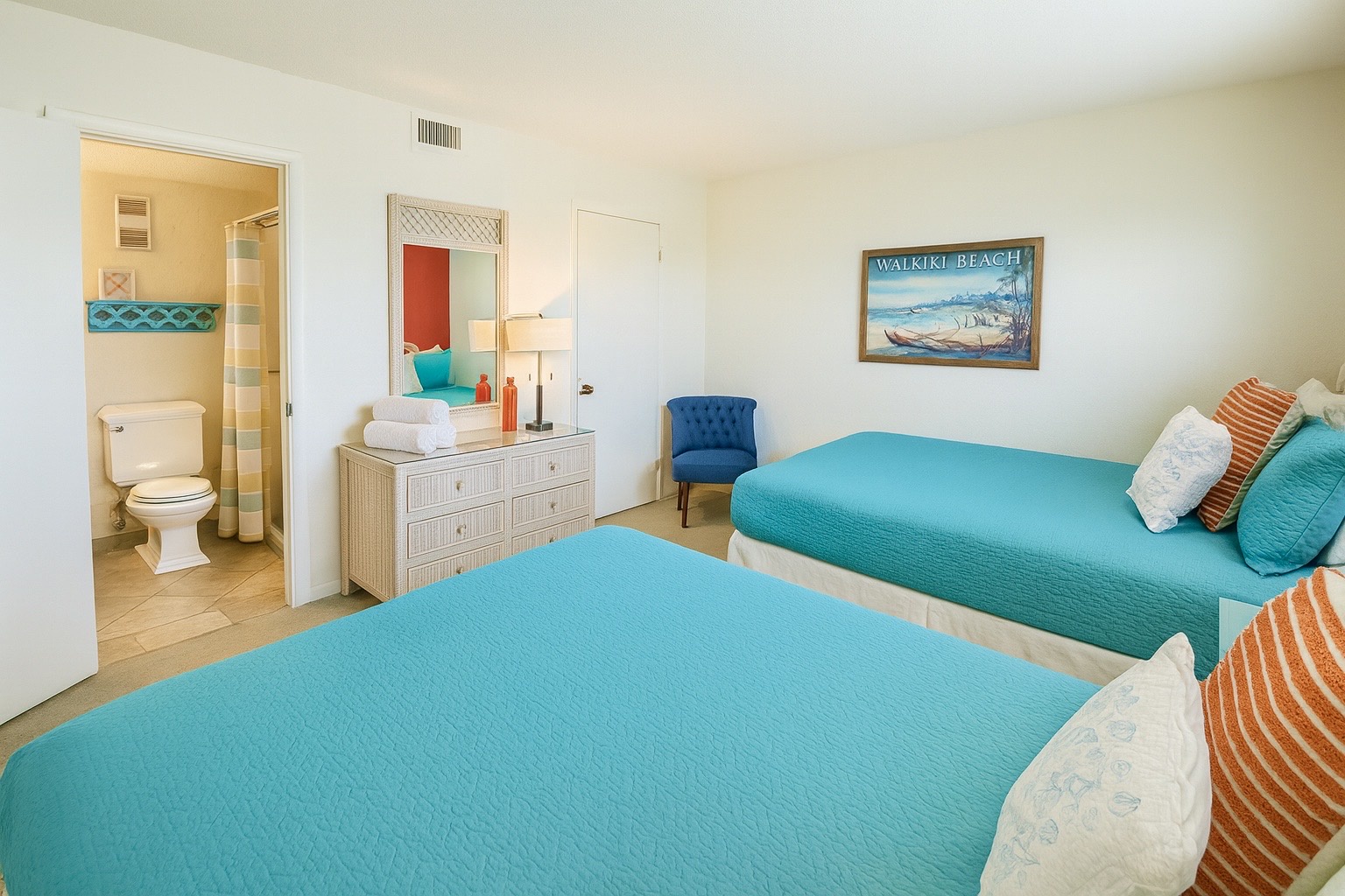 AMENITIES: 7th Floor unit that has been converted from a three bedroom unit to a two bedroom. Large living room area with newly added bunk beds and an extra full bath.