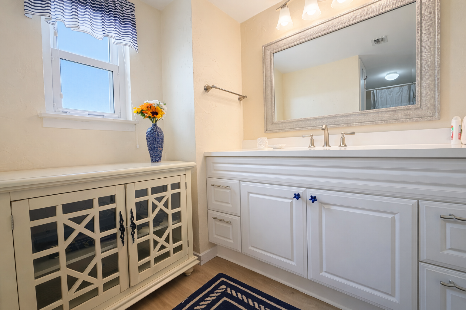 BATHROOMS: Walk-in shower in guest bathroom, tub/shower combo in master bathroom, tub/shower combo in full bath located in living room